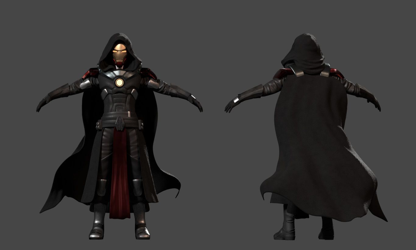 This fan designed look by Mark Pigason is and then appropriate it's difficult to believe it didn't announced in any of the Star Wars movies. If Kylo Ren had been strapped in ane of these awesome suits he would've been unstoppable. And while Tony Stark is a nifty hero, information technology's a lot of fun to imagine him slipping into the nighttime side while wielding a ruddy lightsaber.